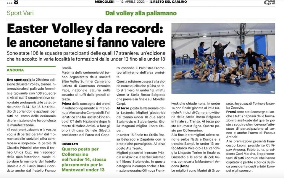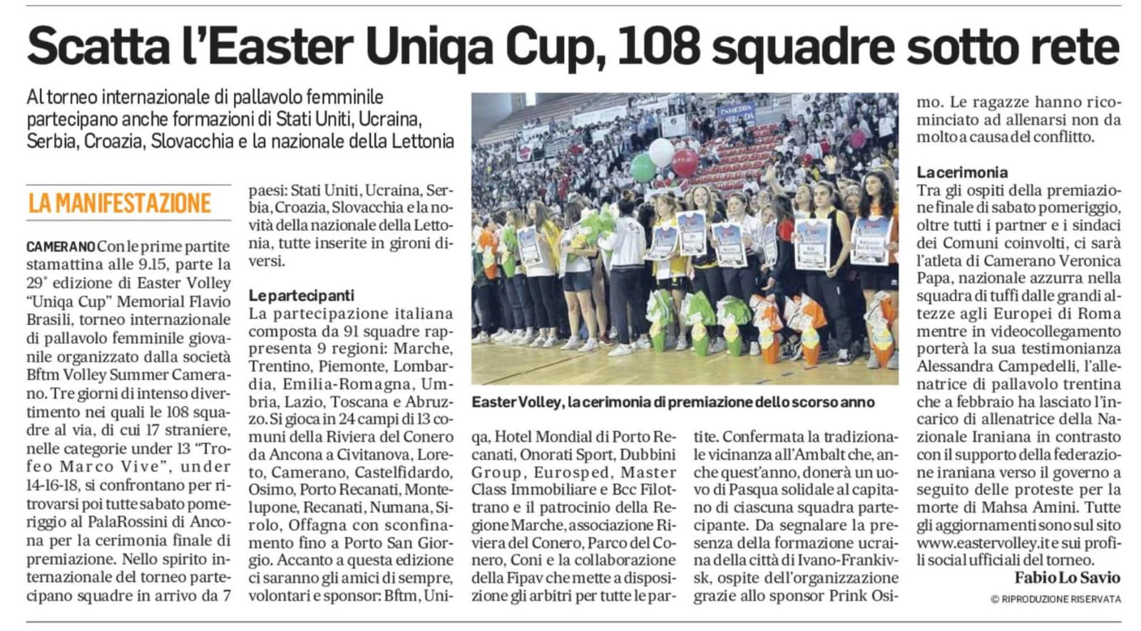 Articolo Giornale EasterVolley 2023 - Corriere Adriatico del 06/04/23